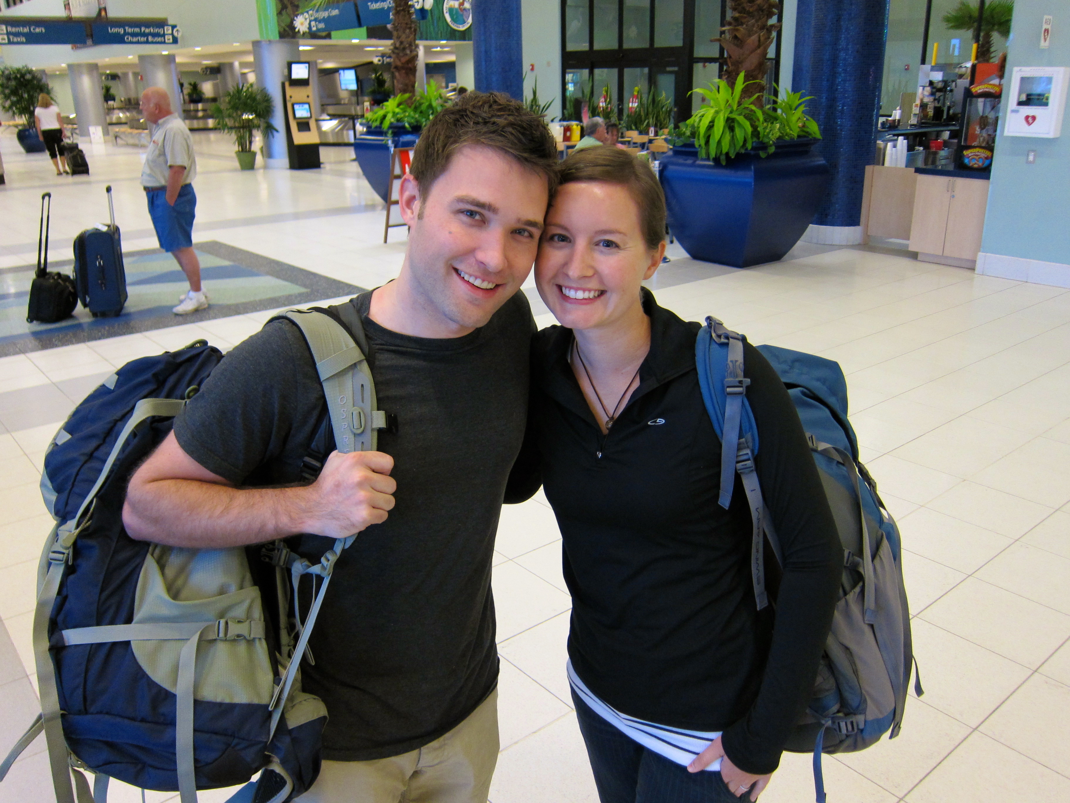 Below is a “before” picture taken in the Panama City Beach airport before leaving for Bangkok. My clothes are clean, and my hair is pulled back in a perfect bun. The blue backpack, white shoulder bag, and my shoes will not survive the trip. When this was taken, I was desperately nervous and fearful that we were making a bad decision in undertaking a completely unplanned itinerary for an indeterminate amount of time. From the backseat of my dad’s car I hyperventilated aloud, “What am I doing, what am I doing?” But from the anti-malarial pills to the headlamps to the water sterilizer, we were sufficiently prepared to travel somewhere for at least year, and I am proud to look back at this picture and know how ready we were, even if I didn’t believe it myself.
