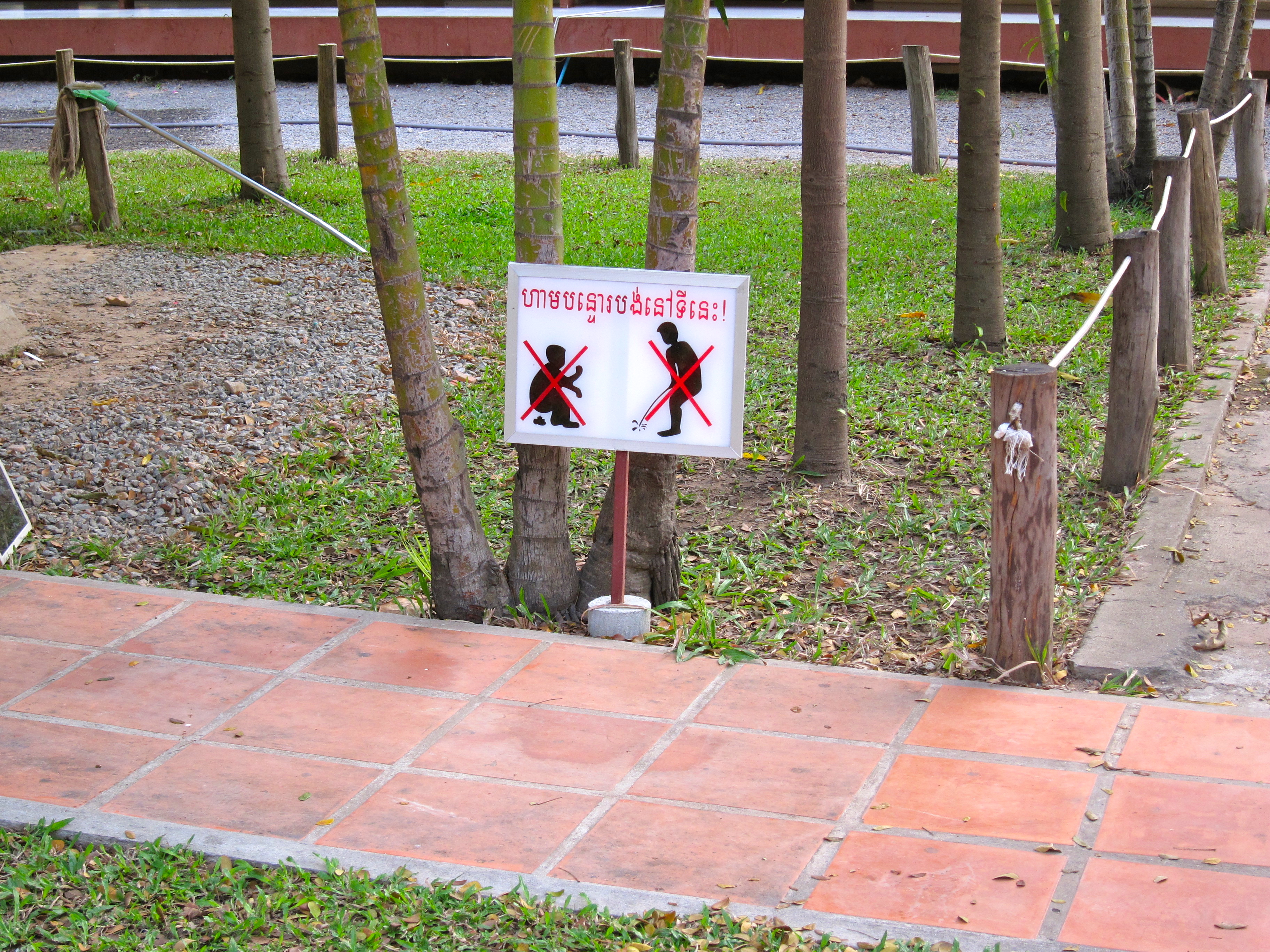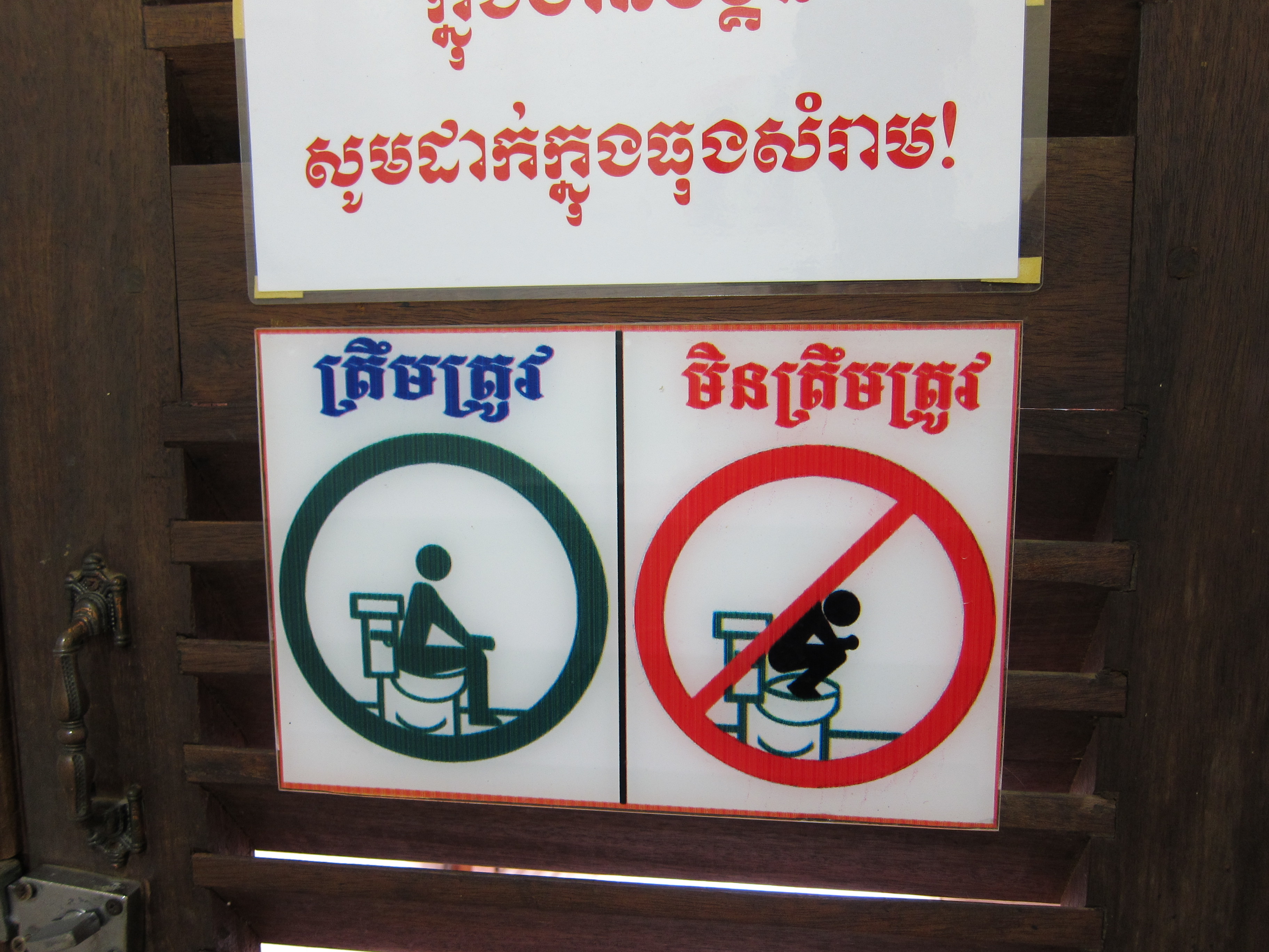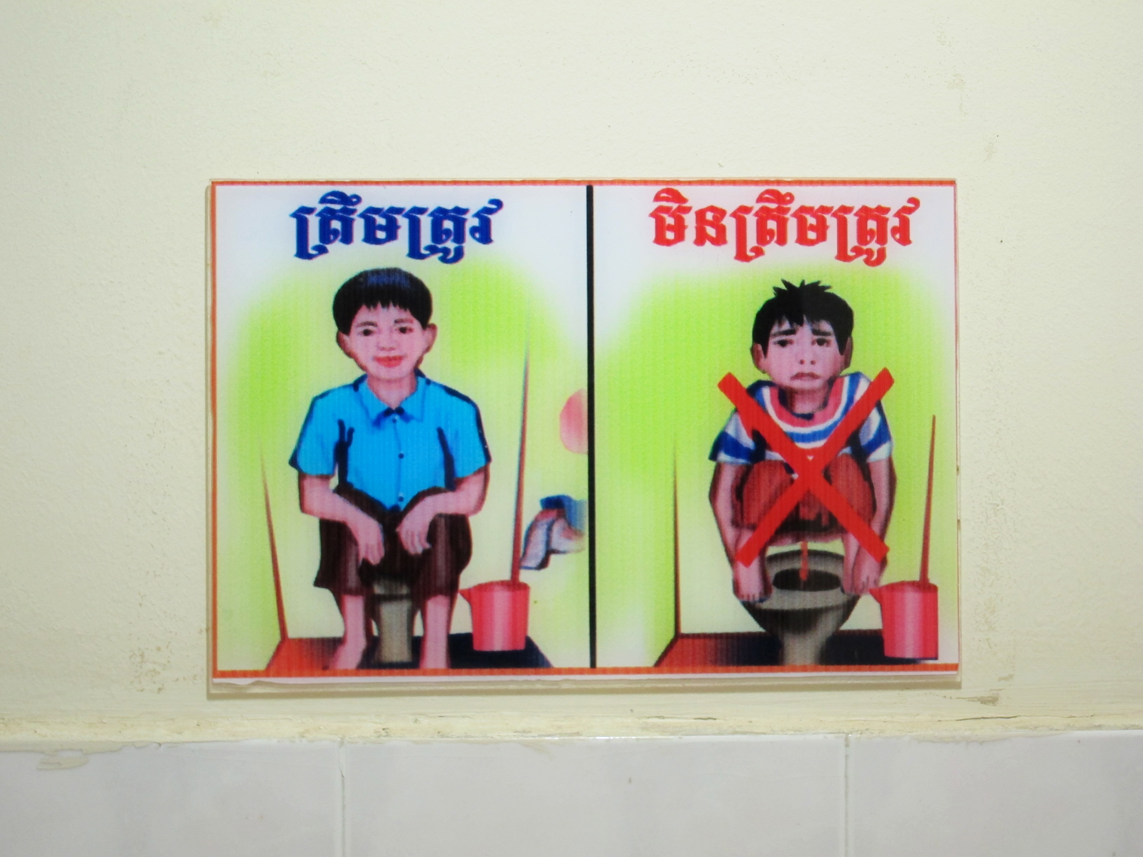We’ve finally grown up a little and started leaving out the majority of our toilet stories on here… but Cambodia was just too prime for good toilet encounters to leave them all out. First, there were the signs at Angkor Hospital that demonstrated that you should use the toilet and not the grass to relive yourself: