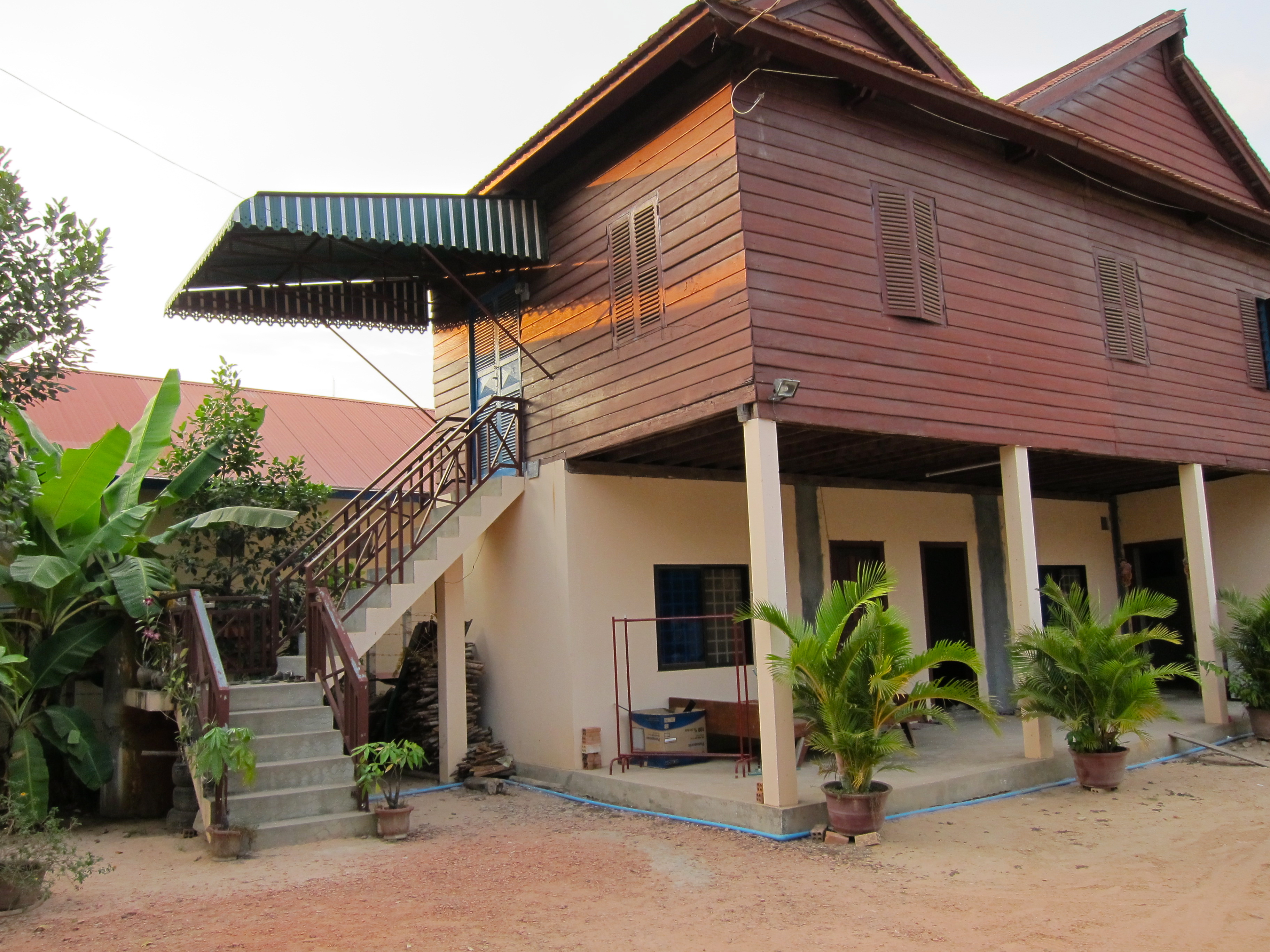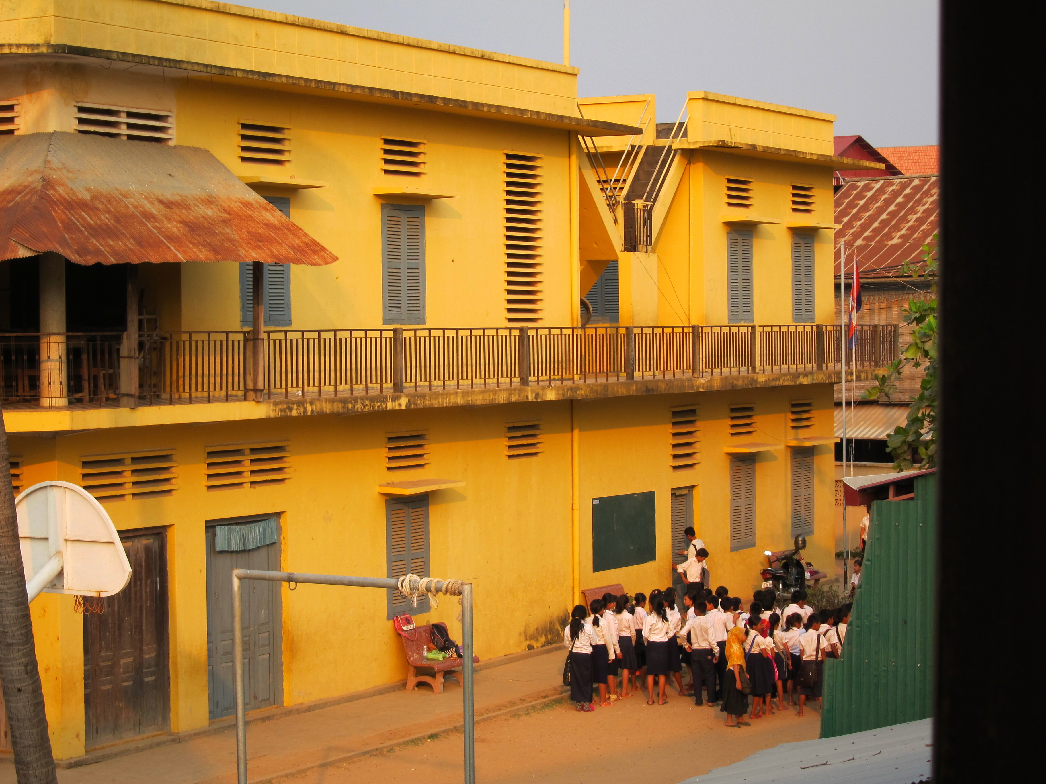 RIght outside our back door, there is a primary school full of adorable, screaming kids who wake us up at 7 am every morning on the dot. Knowing that I would be at work Mondy-Friday, we did not think this would be a problem… That is until Saturday arrived, when we quickly learned that Cambodian children attend school 6 days a week – Monday through Saturday. All was quickly forgiven though – once they discovered that there were foreigners living right outside their school, their favorite activity became lining up on the upstairs railing to wave at us and scream “hello!” at lunch time– too adorable.