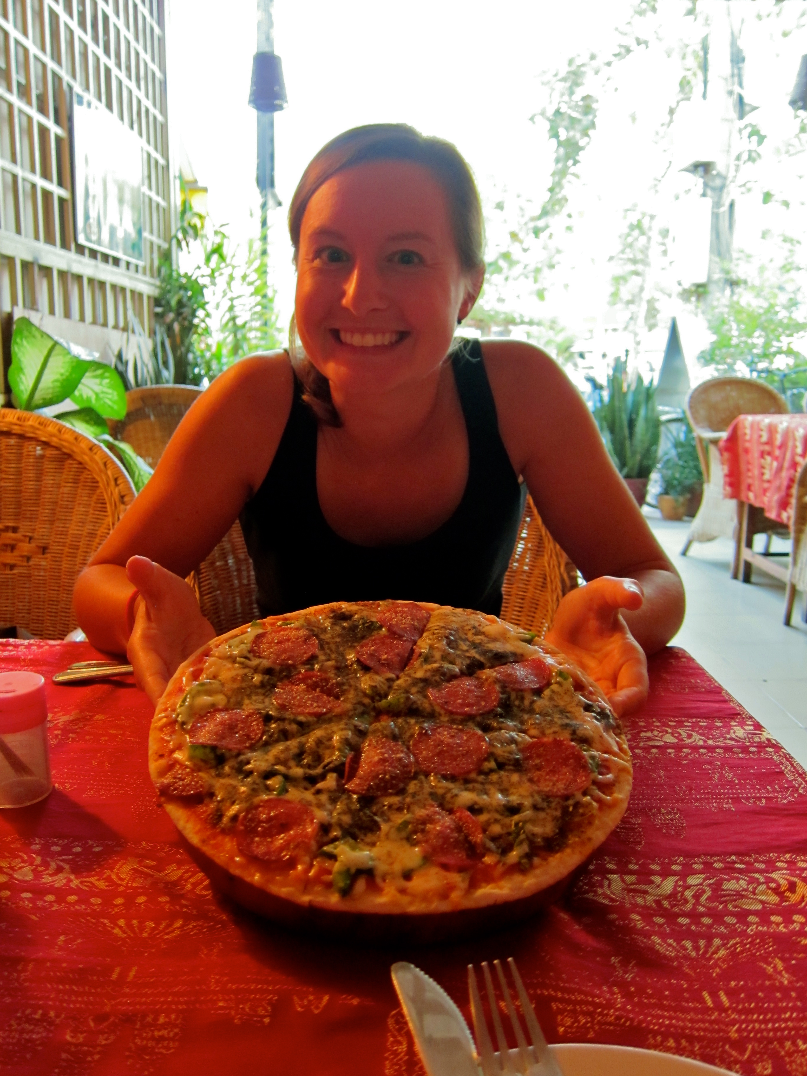 One thing we rarely get to do on the road is keep up with movies, as movies here are usually not in English, or our internet speeds are not fast enough to download them on our own. Siem Reap had a twist on the movie theater we’d never seen before though: personal cinemas that you could rent out for a couple of hours and watch one of hundreds of movies they had in store. Even better than a real cinema, you get to sit in plush couches and order food and drinks to the room (including beer)! Here we are watching either Harry Potter or Moneyball…