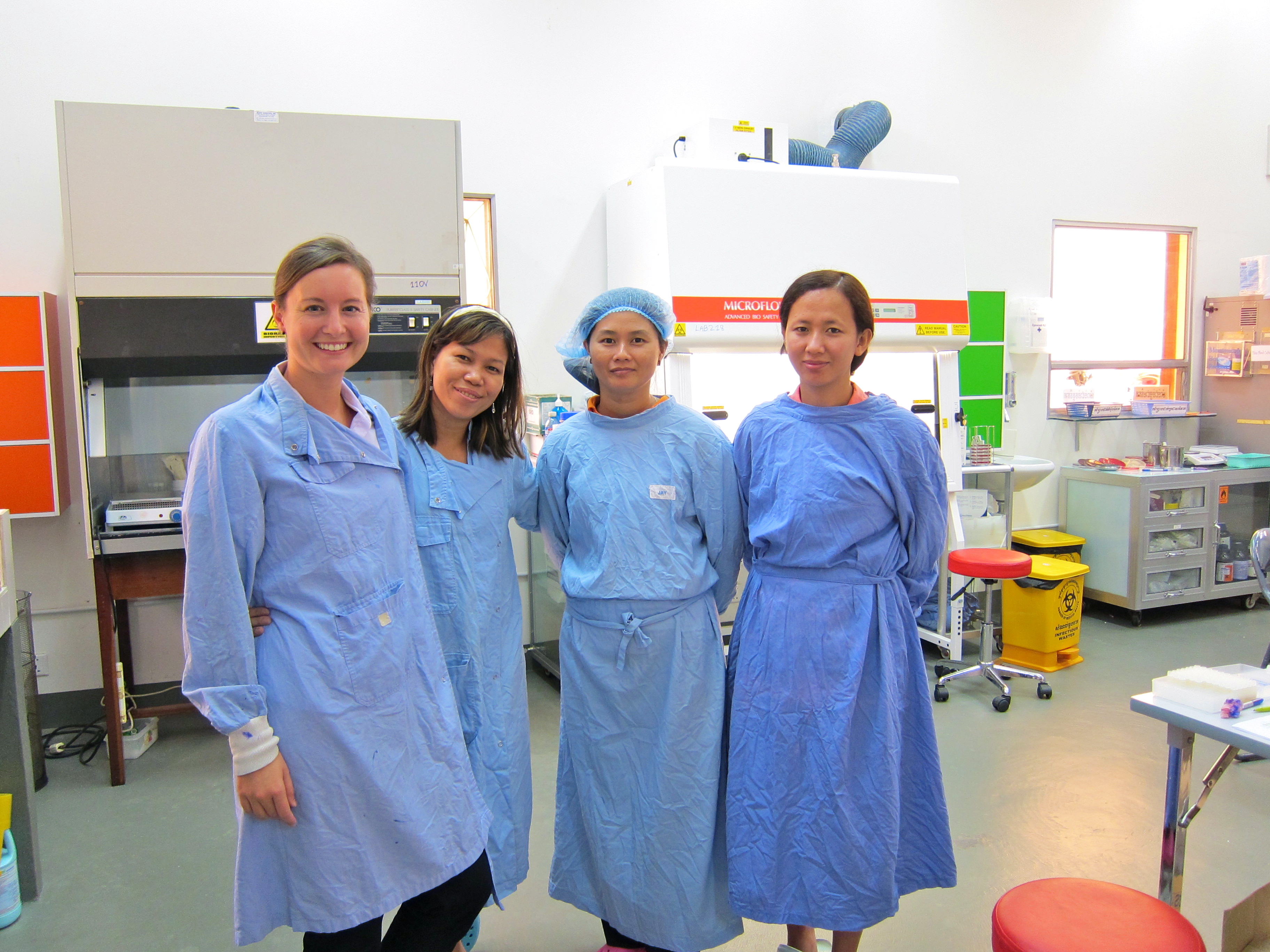 I work in the microbiology department along with Sona (next to me) and Poda (next to Sona), who keep me laughing all day long:
