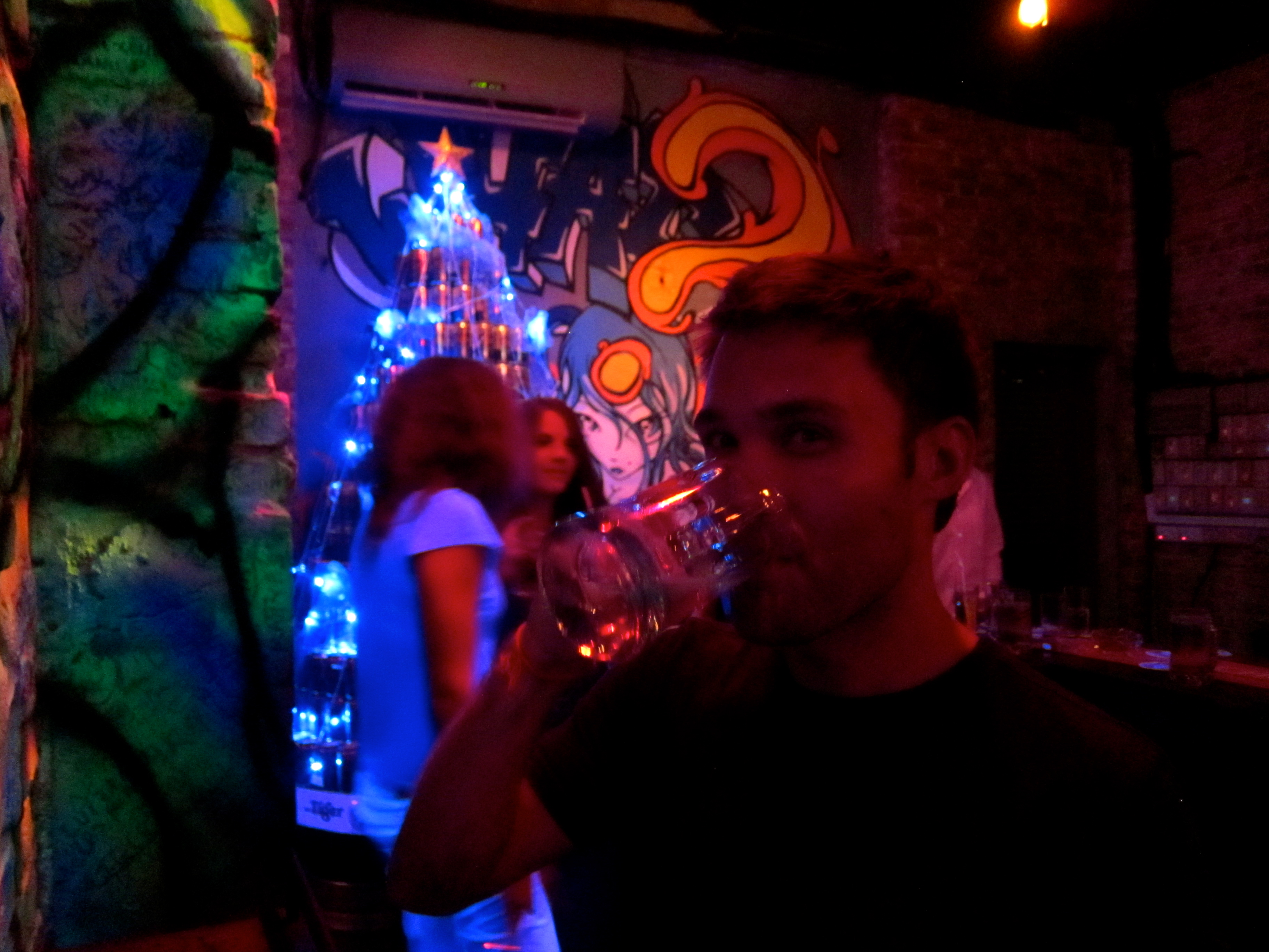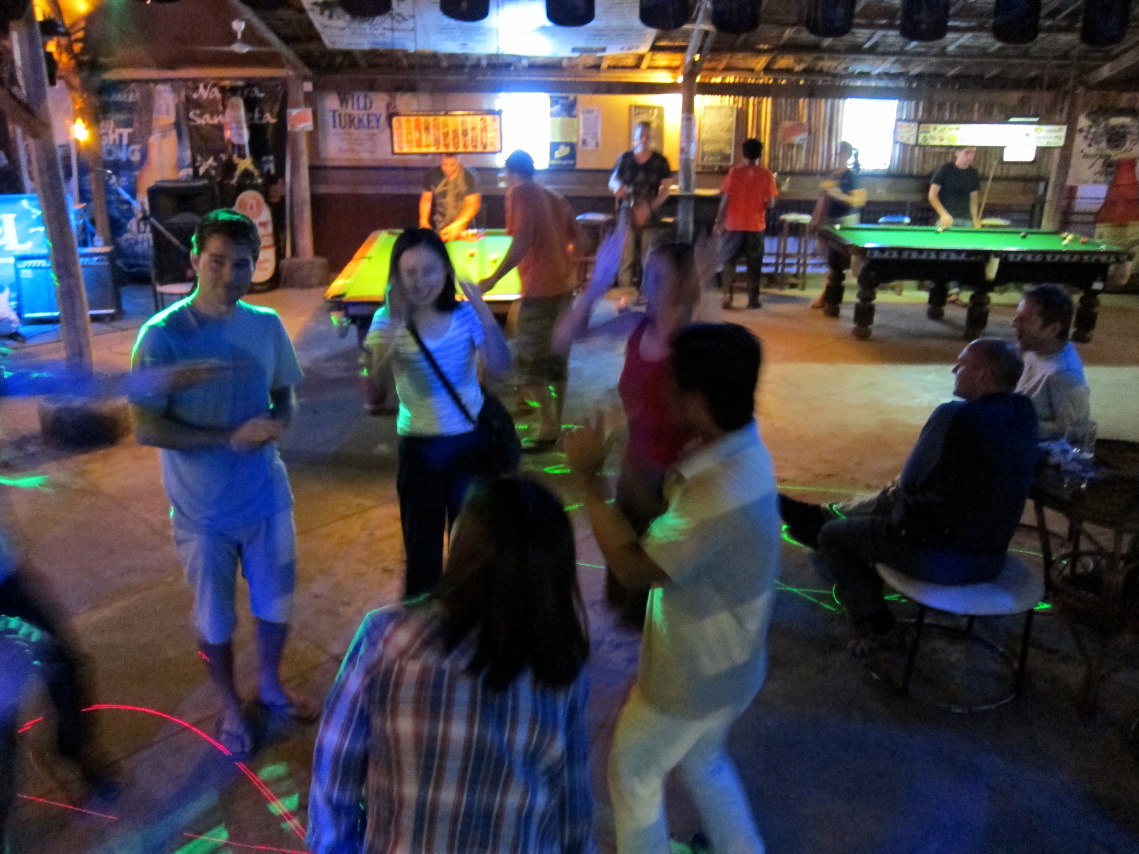 “Angkor What?” bar, where we found ourselves dancing on occasion… the best part about this bar is the UV lights, which illuminate anything white into an other-worldly glow. The clientele is a little young/backpackery, but it’s hilarious to read some of the things that people write on their glowing white T-shirts before heading out onto the dance floor.
