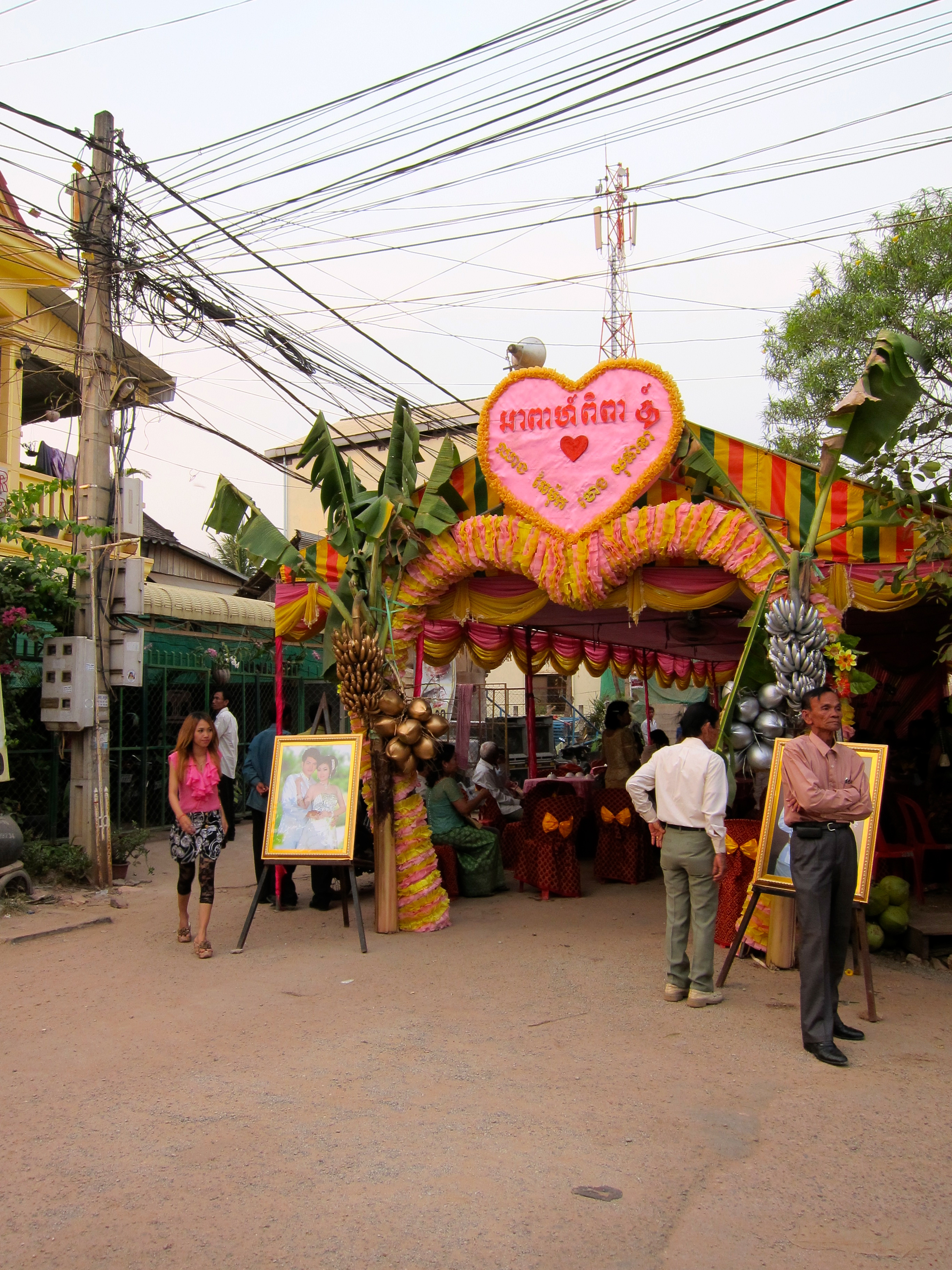 What do Cambodians do when they want to hold a wedding (or funeral) but don’t have any space to hold it? Put it in the middle of the road and make traffic drive around it, of course! This wedding went on for 3 days… and so did the traffic jams. (Luckily, everyone here drives bikes, not cars, so everyone was able to drive around it.)