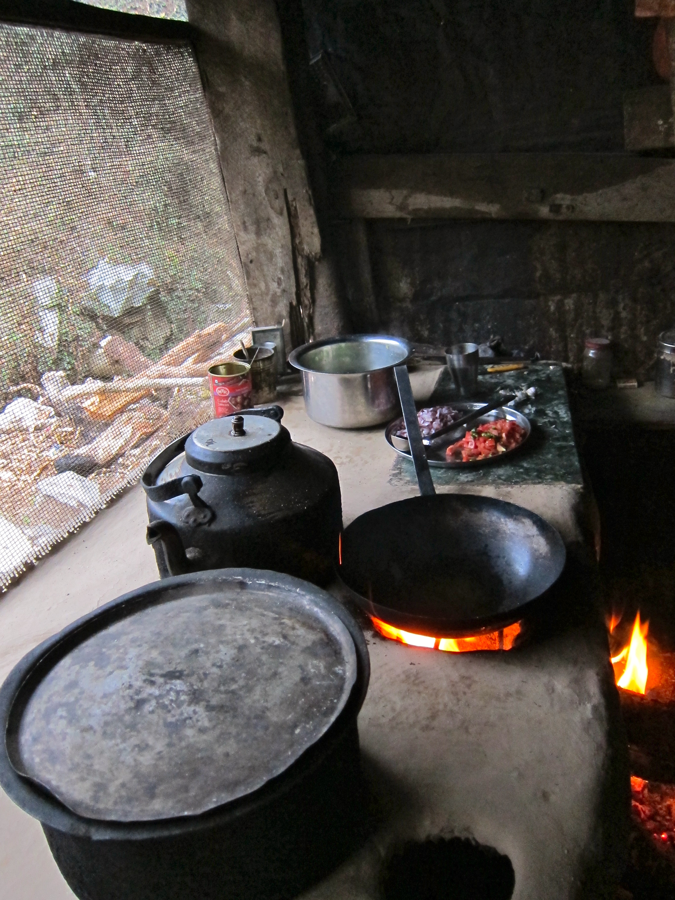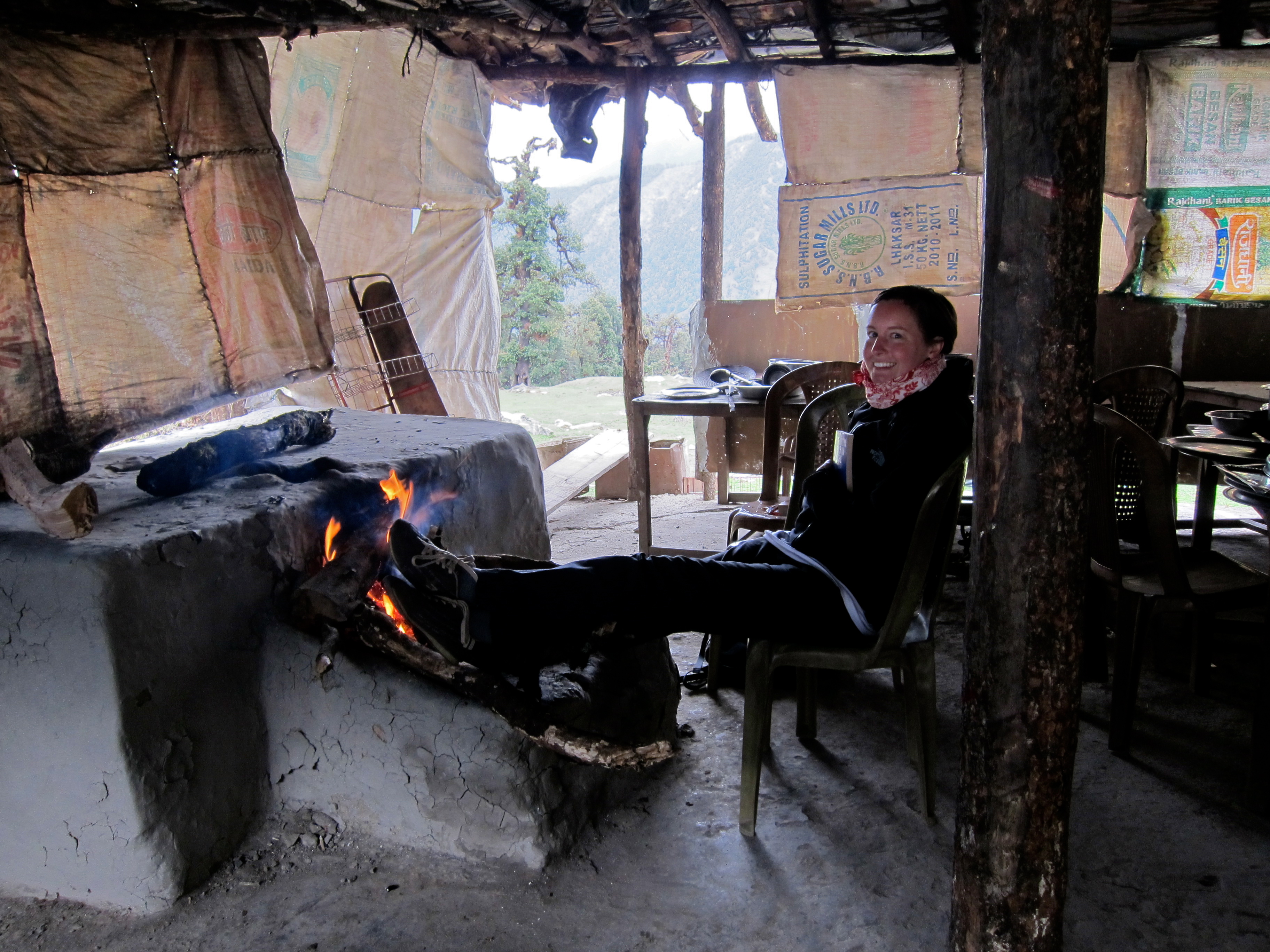 We sat in silence for a few more minutes, then I leaned over to place my empty tea glass on the hearth surrounding the fire. The baba shook his finger at my cup vigorously, still managing to remain silent– apparently the hot cup was bad news for his newly constructed cowdung hearth. I apologized profusely, quickly pulling it back onto the rock floor. Then he tossed a piece of charcoal into each of our glasses and instructed us to swirl them around to clean the glasses. Then we followed him out the entrance of the cave to the river nearby, where we gave the glasses a final swish and declared them clean.
