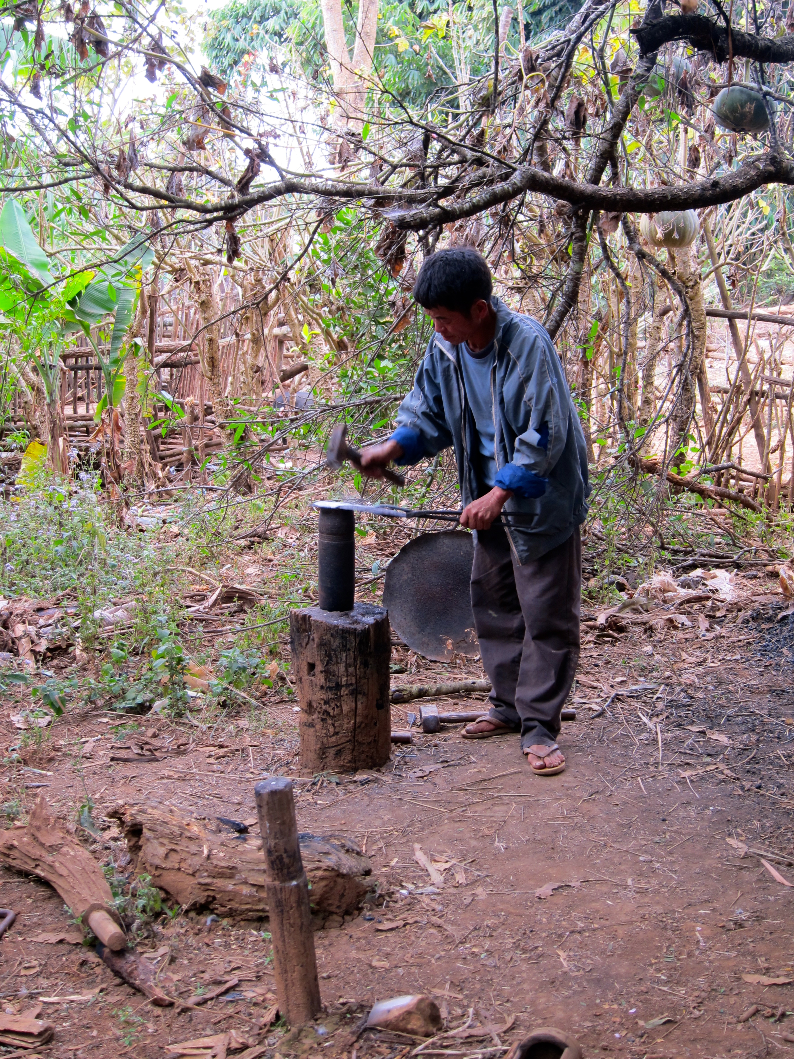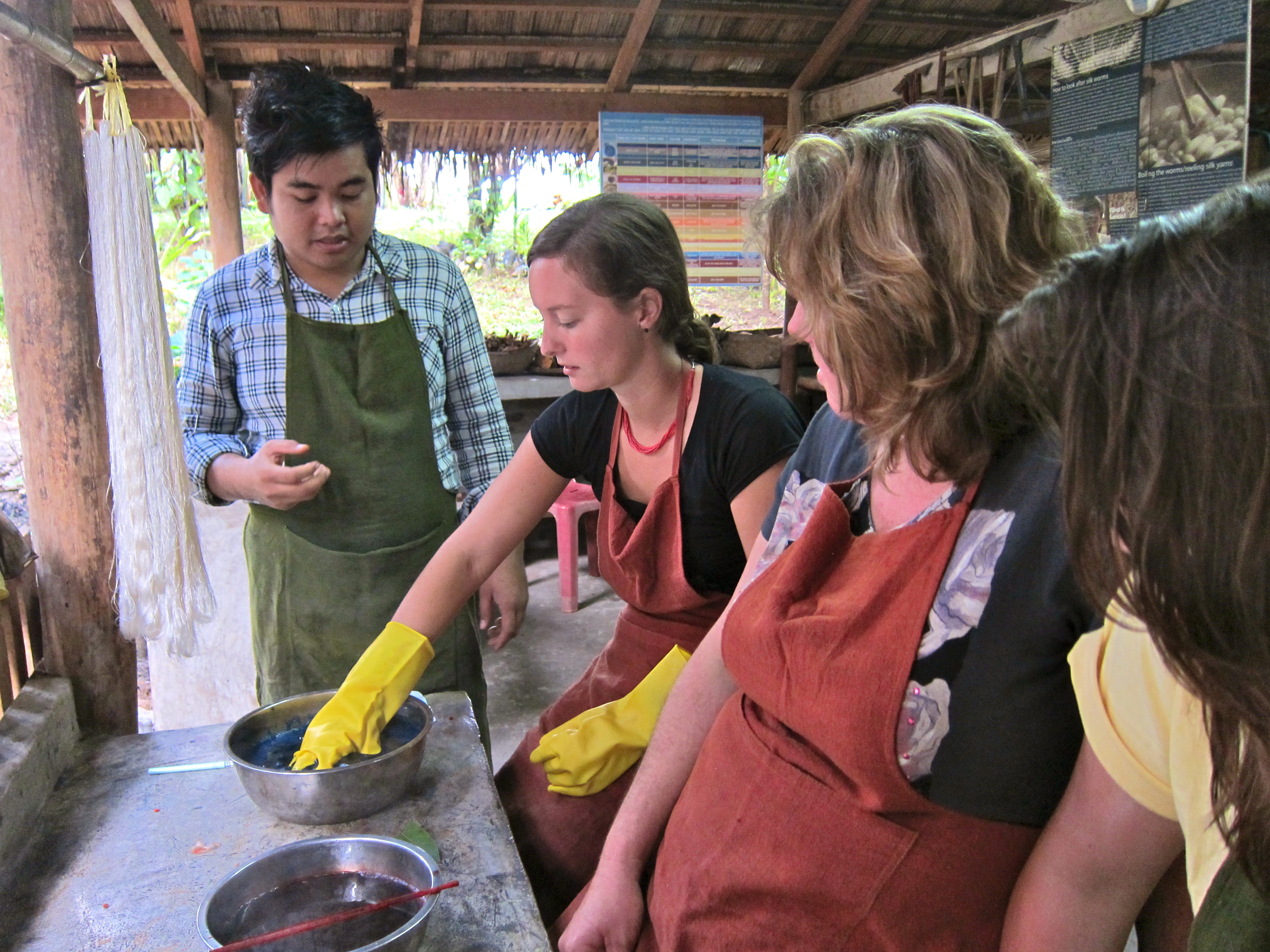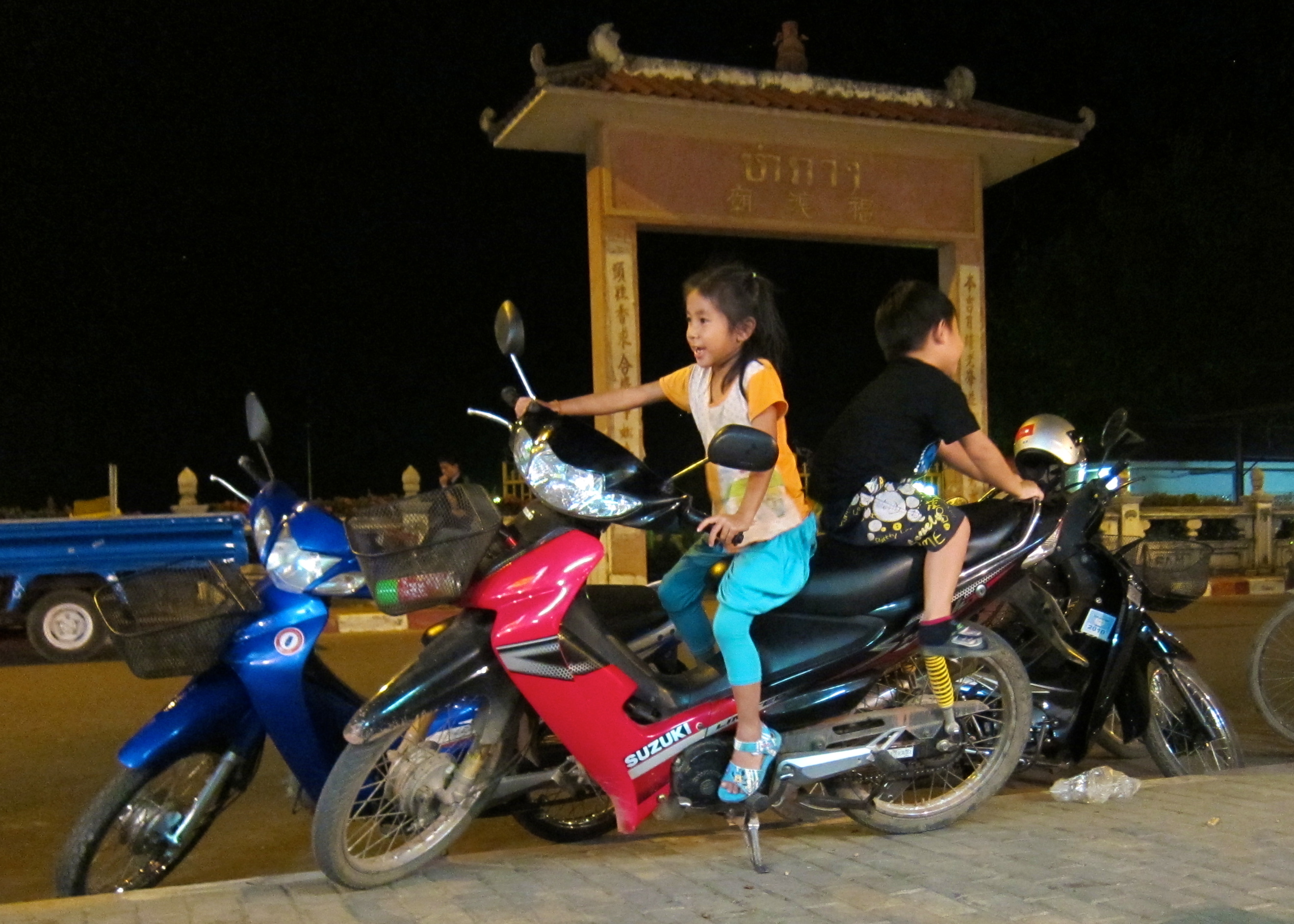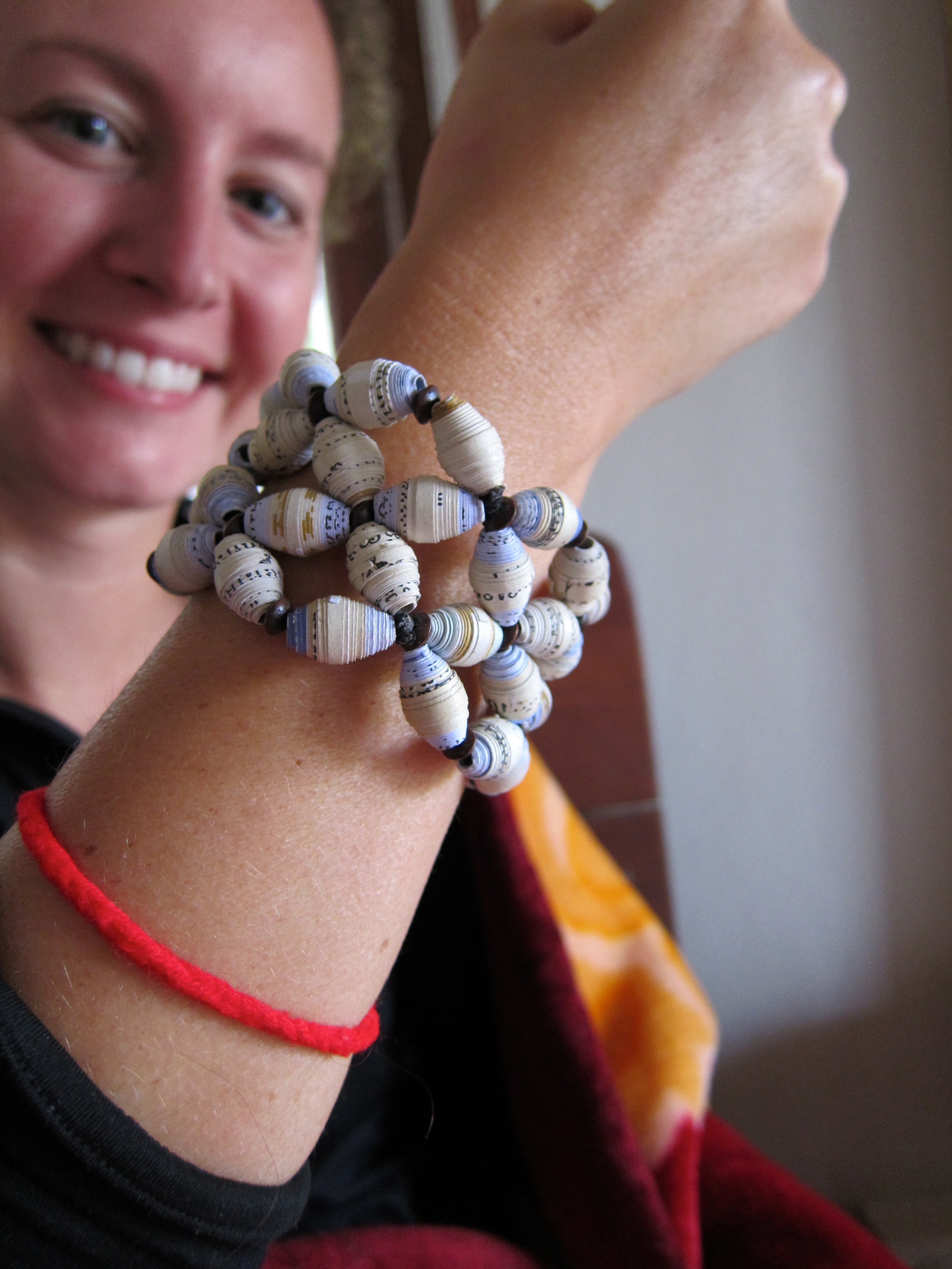 From Scott, I got a book called Blood River about a guy who traverses the Congo (very interesting so far), some aluminum bracelets made of melted down U.S. bombs from the Vietnam War (the village that makes them collects the scrap metal and makes spoons and bracelets out of it for income – more on that later), some woven bamboo and paper bracelets, and a La Chouffe beer (it’s incredibly difficult to find really good beer here – we had carried these all the way from Vientiane)! Scott got some T-shirts, a Cambodian krama (traditional scarf), some carved spoons for cooking back home, and a painting on mulch paper.