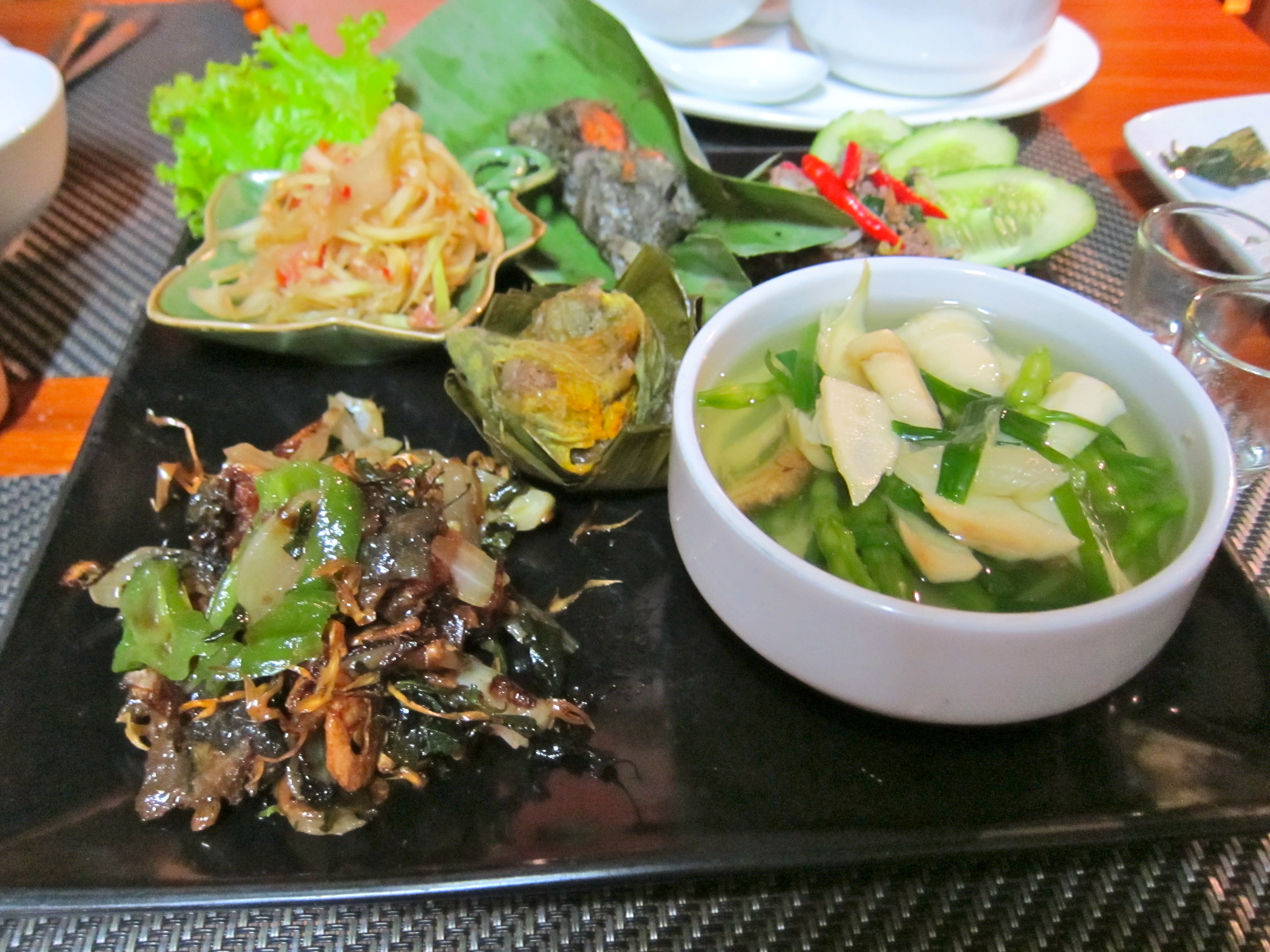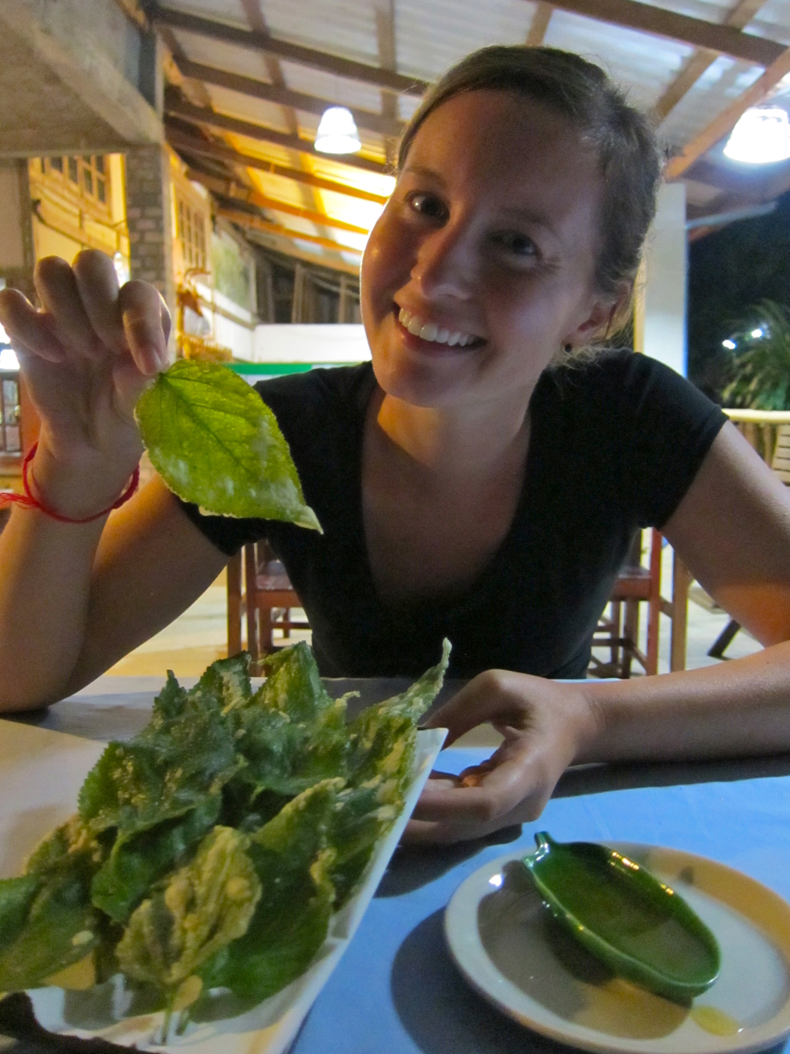 Luckily, the farm itself is still a relaxing place to spend a few days (mostly when the music is off). The highlight of staying at the farm for us was that it unexpectedly ended up being quite the culinary adventure! The farm produces nearly everything that is served in their restaurant, meaning everything is fresh-picked and delicious. The main product that they grow is the mulberry, a small berry similar to raspberries. But they don’t only eat the berries; like many things cultivated in developing countries, nothing from the mulberry bush went to waste. We were inundated with mulberry tea (made by steeping the mulberry leaves in hot water), mulberry shakes, mulberry pancakes, fresh mulberries, even mulberry tempura (deep-fried mulberries leaves)! The tempura was subtle, but very crispy and unique: