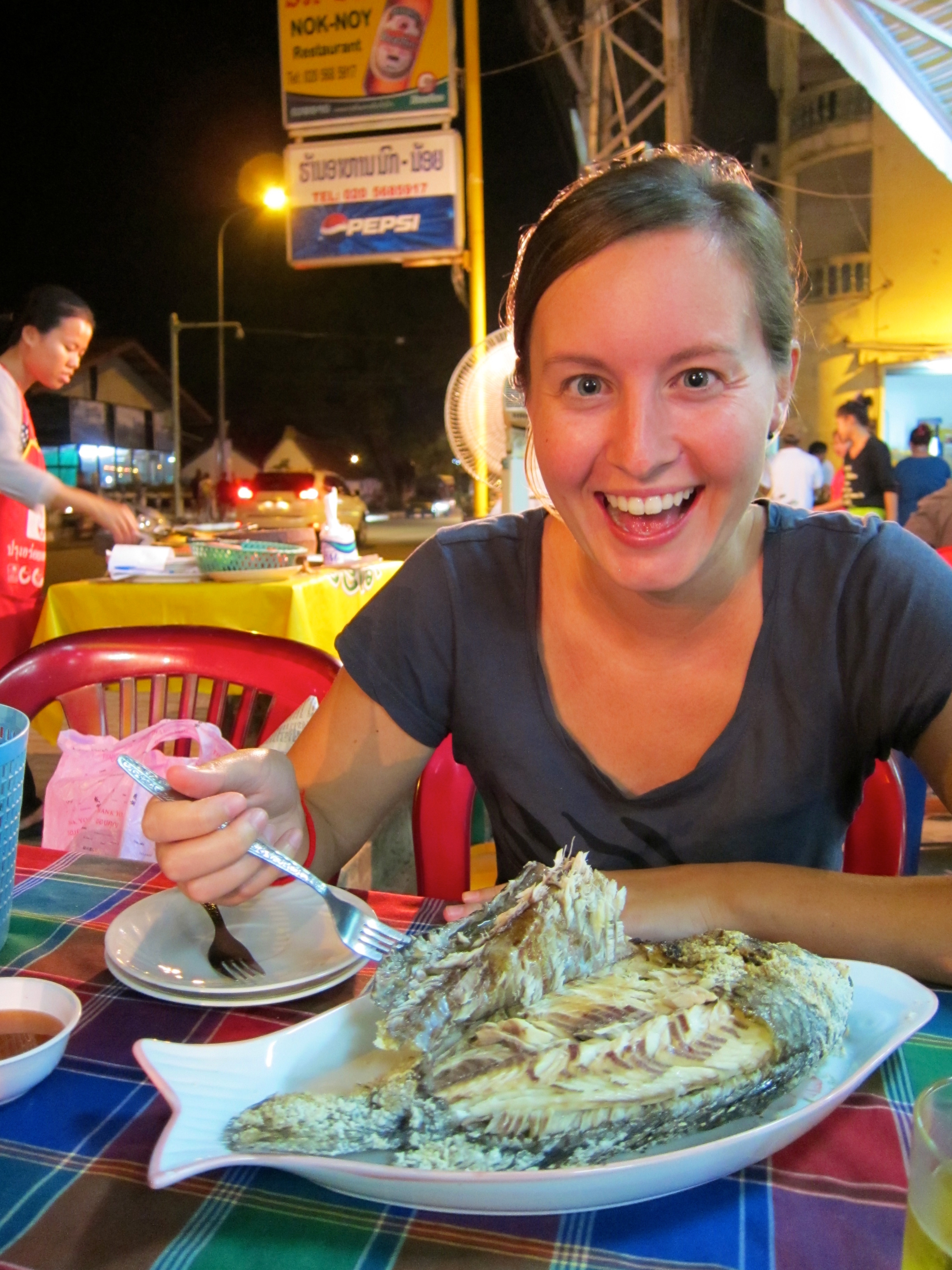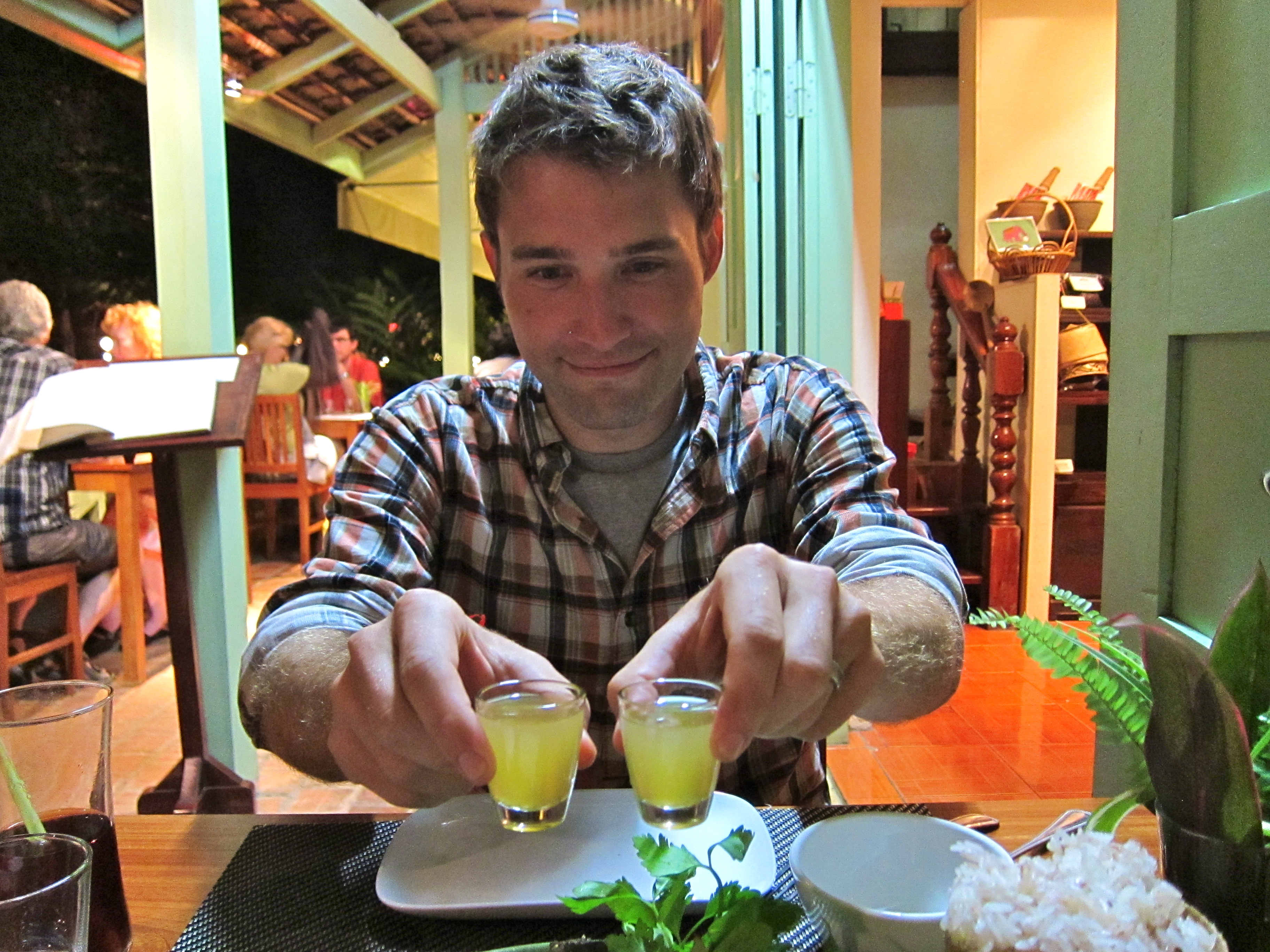 On one occasion we were trying to enjoy a peaceful dinner at the farm, when a lost, drunk, and horribly smelly tuber in nothing but a neon bathing suit sat down at our table with us; having no inkling of where he was, we had to get up from our dinner and arrange a tuk tuk ride for him back into town (you see, many of the “tubers” never actually get into their tubes at all – they party at the first river bar all day and then have to get a taxi ride with their tube back into town). The next night, the same thing happened to us again! …except this time the kid was wearing a Santa hat and was a whole lot smellier. Embarrassingly, he tried to “fist bump” Mr. T on his way out the door. It didn’t go over well.