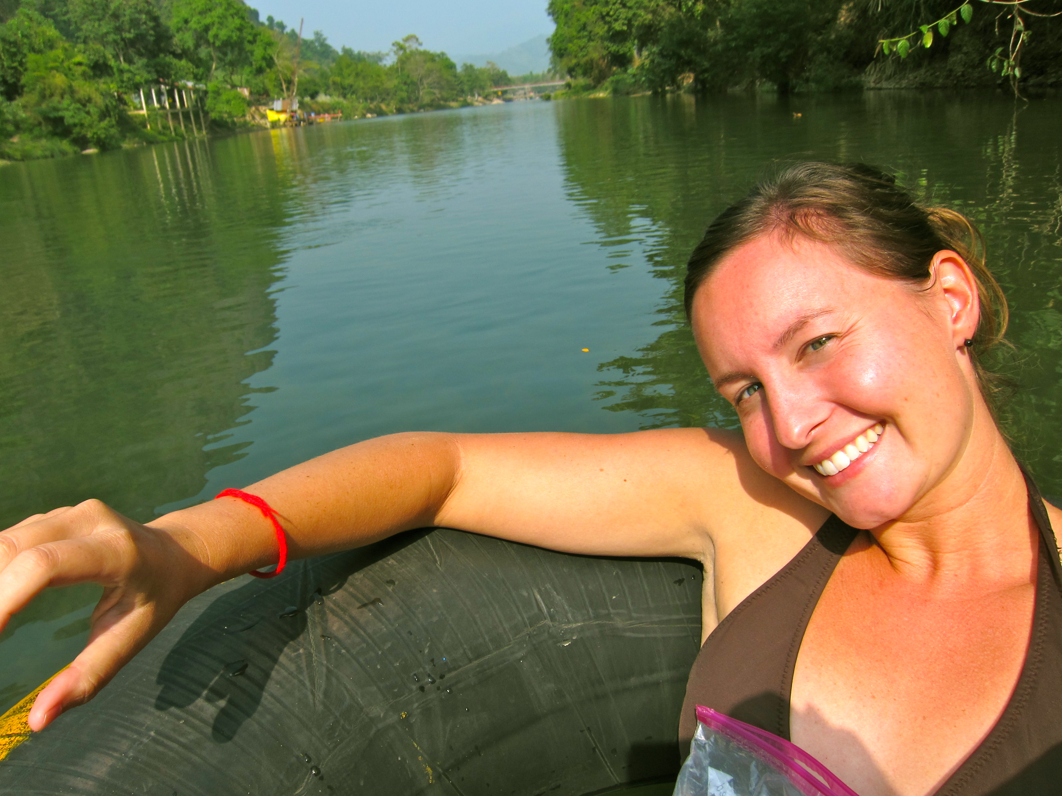 Once we had finished opening presents, we decided to do Christmas day right and go river tubing. We did not contribute to the above-mentioned drunken tubing mayhem (although we did sneak in a Beer Lao on the way down the river…). We could see why the tubing had become so popular in the first place – the scenery was stunning, and it was a great way to pass the day.