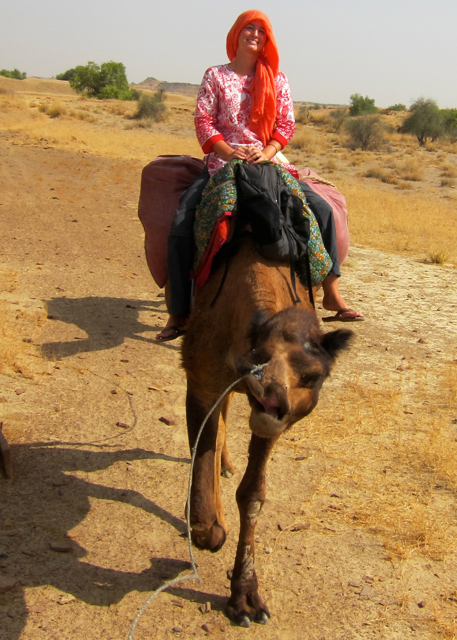 Another enormous problem: there are no trashcans in India, it seems. We’ve been here for 3 weeks, and I did see one at a train station once. So I know they exist. Why there are not more, I do not know. What this lack of trashcans means is that, like in many developing countries, many people unfortunately throw their trash onto the sidewalk or out the window of the bus rather than holding onto it. In fact, the practice seems to be so acceptable to some people here that the following happened to us one day: we were talking to a nice guy we met on the train, and when I finished eating a bag of chips, he smiled, snatched the Lay’s bag out of my hands and tossed it right out the window for me. The only correct reply from me was a forced, meager “thanks…” Sadly, the trash not only looks and smells bad, it is eaten by the multitude of cows and dogs who roam the streets. I saw a cow chewing on a plastic bag outside of the Jaisalmer fort the other day; he swallowed it and just broke my heart at the same time.