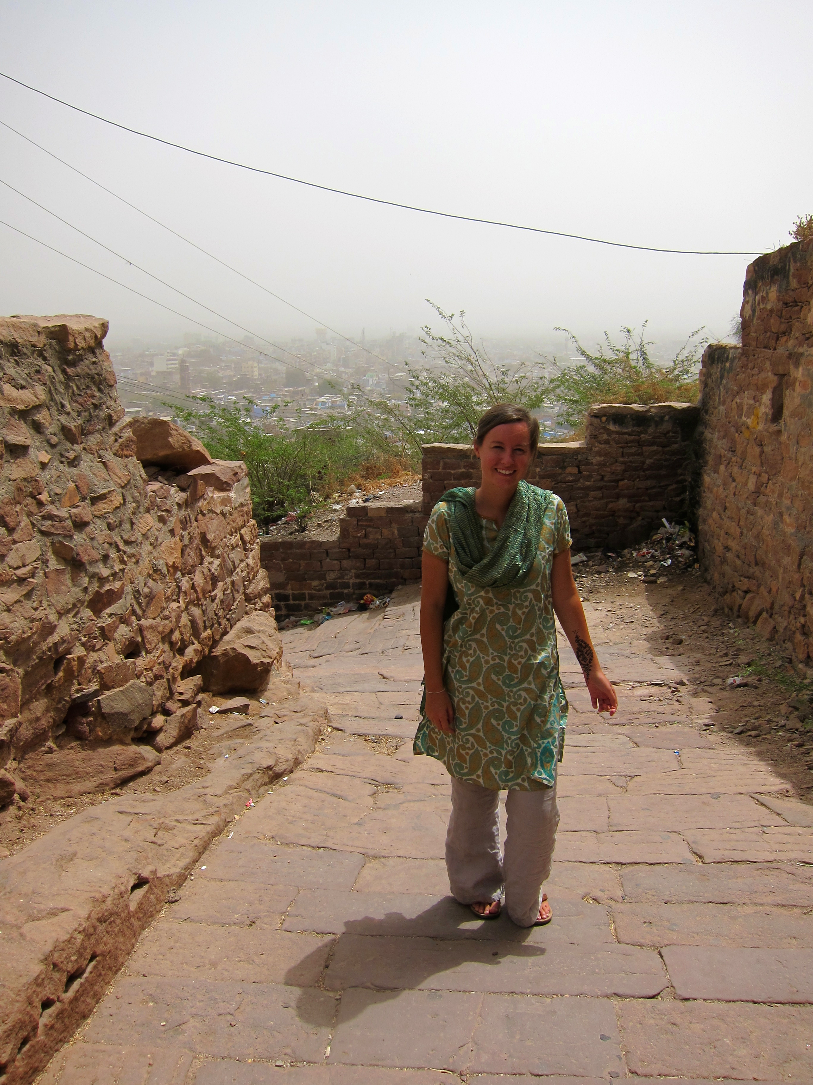 But candy wrappers and coke bottles are the least of one’s worries when walking around cities in Rajasthan. In the town of Jodhpur, there are cows everywhere. Which means there is poop– everywhere. Even worse, some of the cow poop gets pushed into the gutters, where it turns into a never-ending poop sludge… one that gets stepped in, tracked inside of homes, and accidentally consumed, I’m sure. (As a funny side note, one day I was walking down the street in Jodhpur, doing the usual poop-hop-shuffle, when I felt something hit the top of my head. Scott confirmed my worst fears– pigeons. Poop was coming at us from every angle!) But the most telling, eye-opening hygiene problem we saw during our time in Jodhpur was the day we visited Meharangh Fort. We were walking up a steep hill, and I was looking down as I walked– suddenly we came upon a girl, at least 8 years old– she had her dress hiked up, tush up in the air, and she was defecating in the middle of the road. Excited to see foreigners, she lifted one hand from her knees to wave and scream “hiii-iii!” to us. We waved and smiled back in blank-faced, shocked horror– sadly, all that waste we had been trying to step over wasn’t only from cows, after all. That scene brought my worries for the town to a new level entirely: transmission of human-specific diseases (Shigella spp…), concern about the level of health education– this was a new ballgame entirely.
